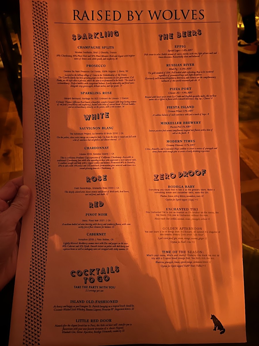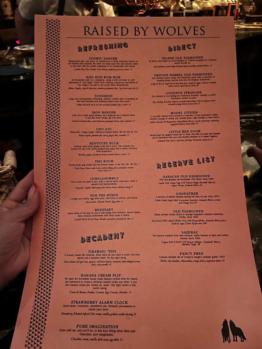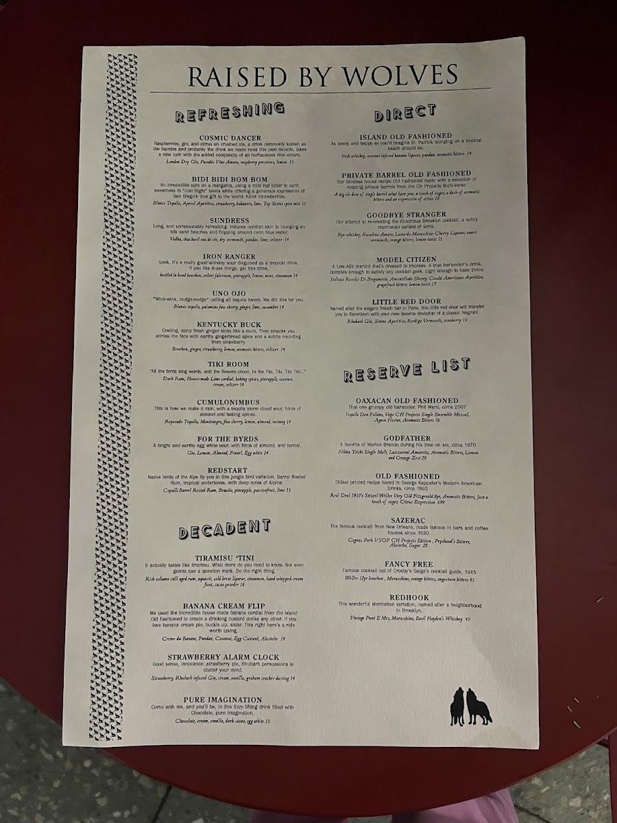With all of these incredible offerings, it's no wonder that Raised by Wolves has made a lasting impression on its visitors. Whether you’re a local or just passing through, this cocktail bar is a fantastic destination for anyone seeking exceptional drinks and a captivating atmosphere. Come immerse yourself in the enchanting world of Raised by Wolves—you deserve it!