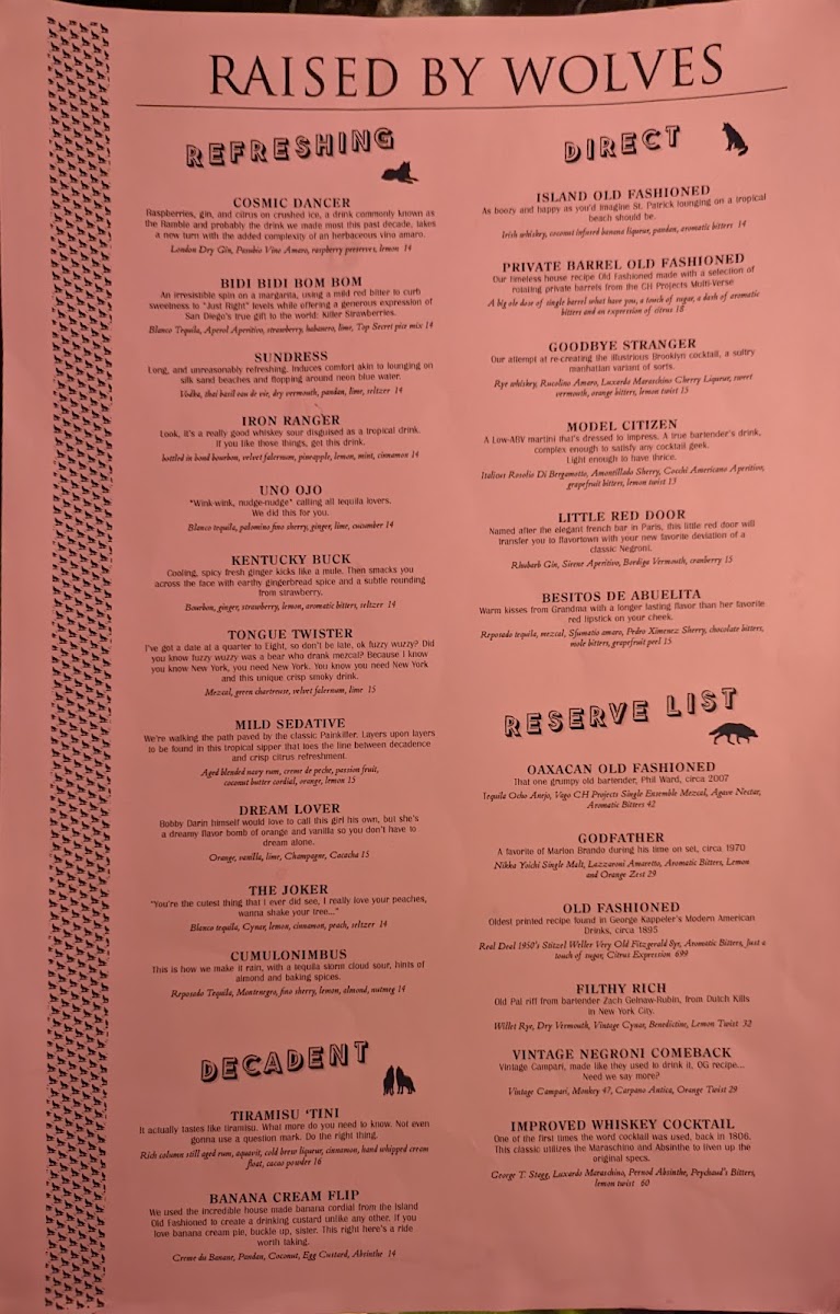 Welcome to Raised by Wolves, a cocktail bar that stands out in the vibrant heart of San Diego, located at 4301 La Jolla Village Dr #2030. This establishment is not just another bar; it’s an immersive experience that transports you into a world of artisanal drinks and luxurious ambiance.